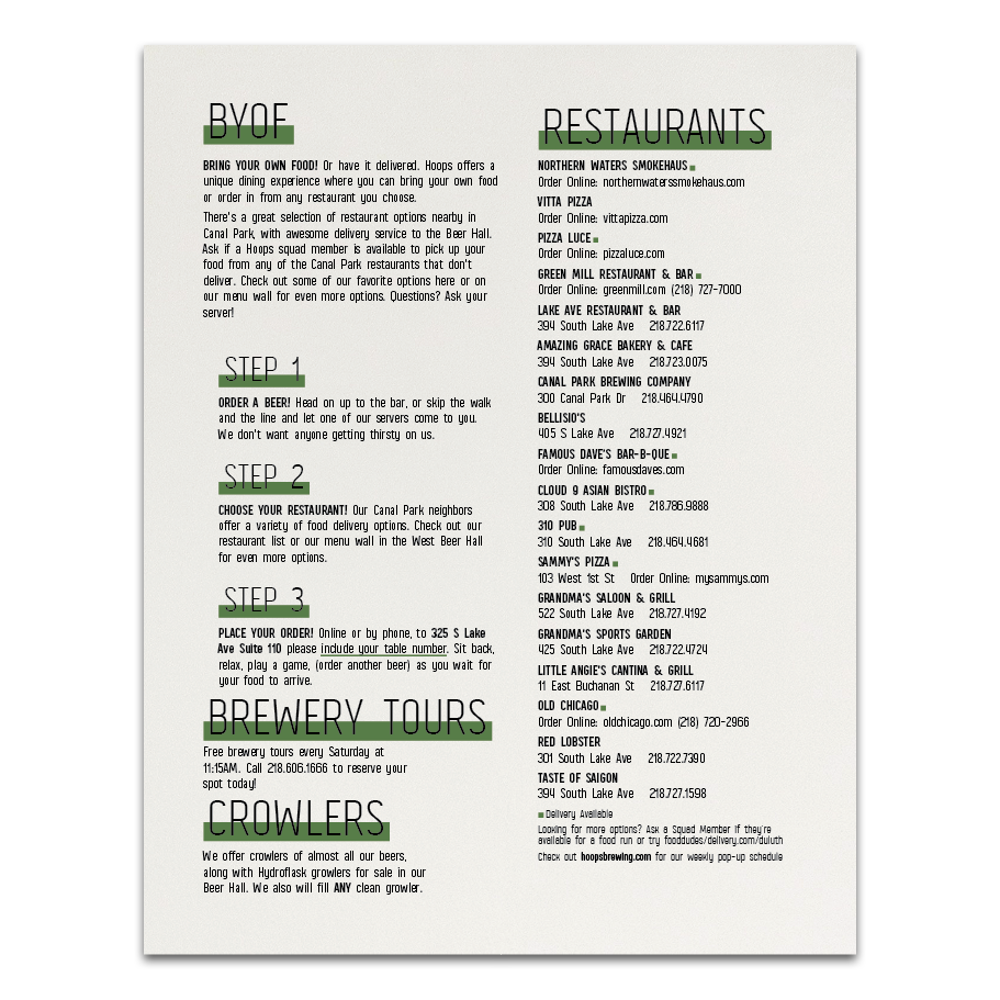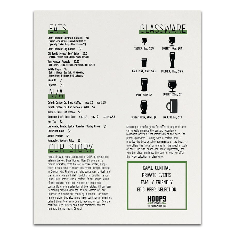 Design a modern menu, that features their unique variety of glassware, and is user-friendly that allows in-house staff to easily update the tap list on a frequent basis.
